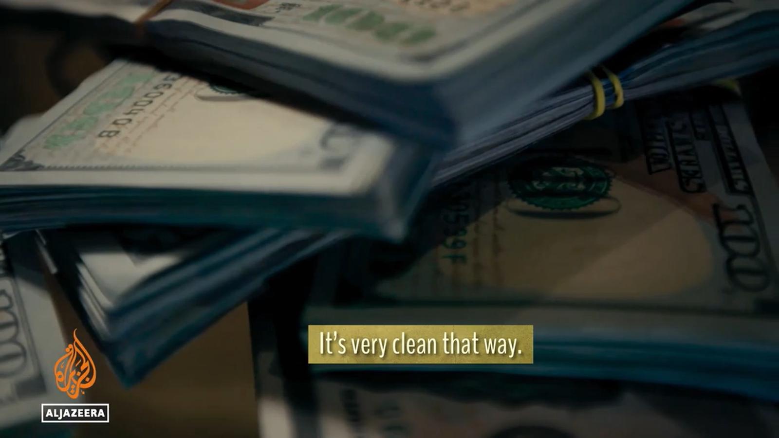 Theo Al Jazeera, Kamlesh Pattni nói với phóng viên rằng, vàng sẽ được chuyển đến Dubai, được nhập khẩu bởi các công ty thuộc sở hữu của Pattni. Các công ty đó bán vàng, số tiền thu được sẽ được gửi vào ngân hàng và tiền sẽ sạch. Ảnh cắt từ phóng sự của Al Jazeera