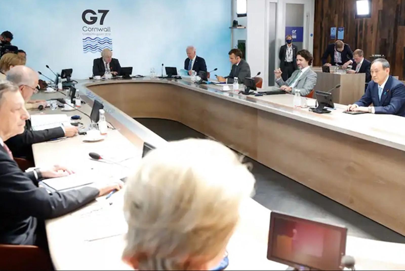Nhóm G7 tham dự phiên họp toàn thể trong Hội nghị Thượng đỉnh ở Cornwall, Anh ngày 13/6/2021. Ảnh: Phil Noble / Pool / AFP / Getty Images