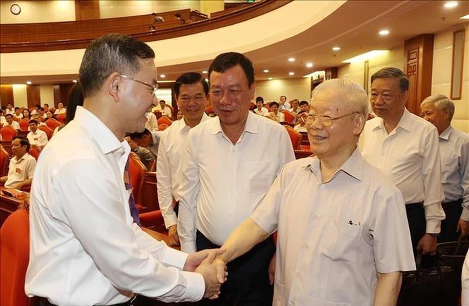 Tổng Bí thư Nguyễn Phú Trọng với các đại biểu dự hội nghị sơ kết một năm hoạt động của Ban Chỉ đạo cấp tỉnh về phòng, chống tham nhũng, tiêu cực, ngày 19/6/2023. Ảnh: TTXVN
