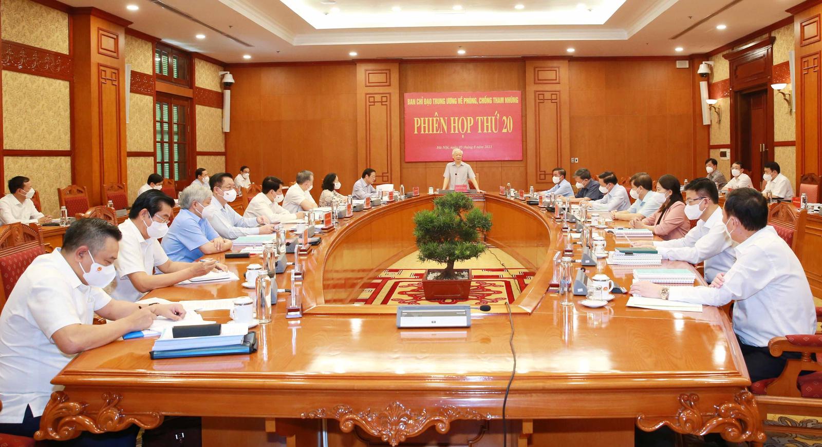 Tổng Bí thư Nguyễn Phú Trọng chủ trì Phiên họp thứ 20 của Ban Chỉ đạo Trung ương về PCTN. Ảnh: TTXVN