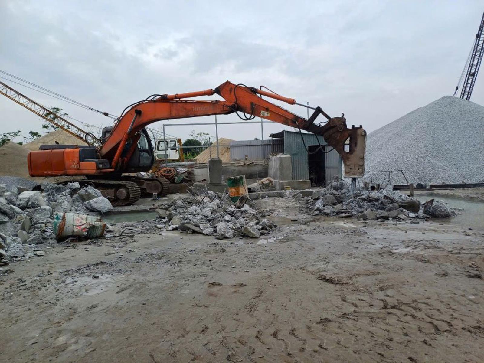 Tháo dỡ trạm trộn bê tông trái phép tại xã Vũ Vân sáng ngày 30/10. Ảnh: TD