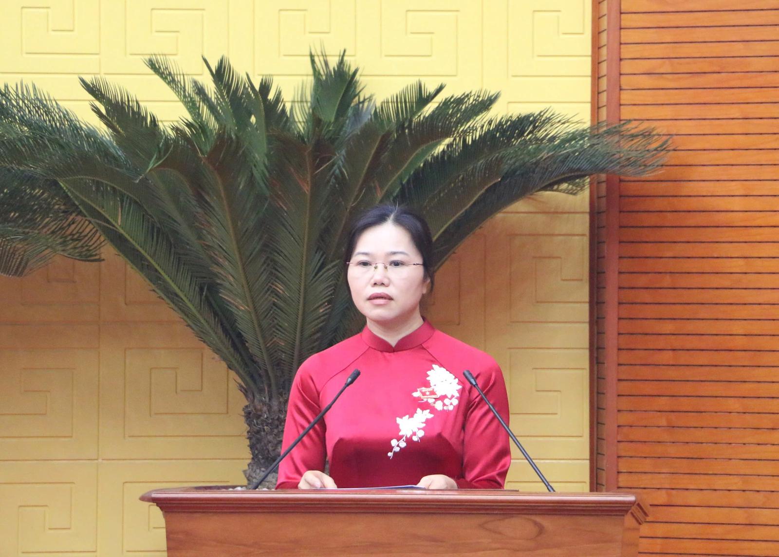 Bà Bùi Thị Minh, Phó Bí thư Thường trực Tỉnh ủy, Chủ tịch HĐND tỉnh Hòa Bình phát biểu tại Kỳ họp. Ảnh: Kim Thanh