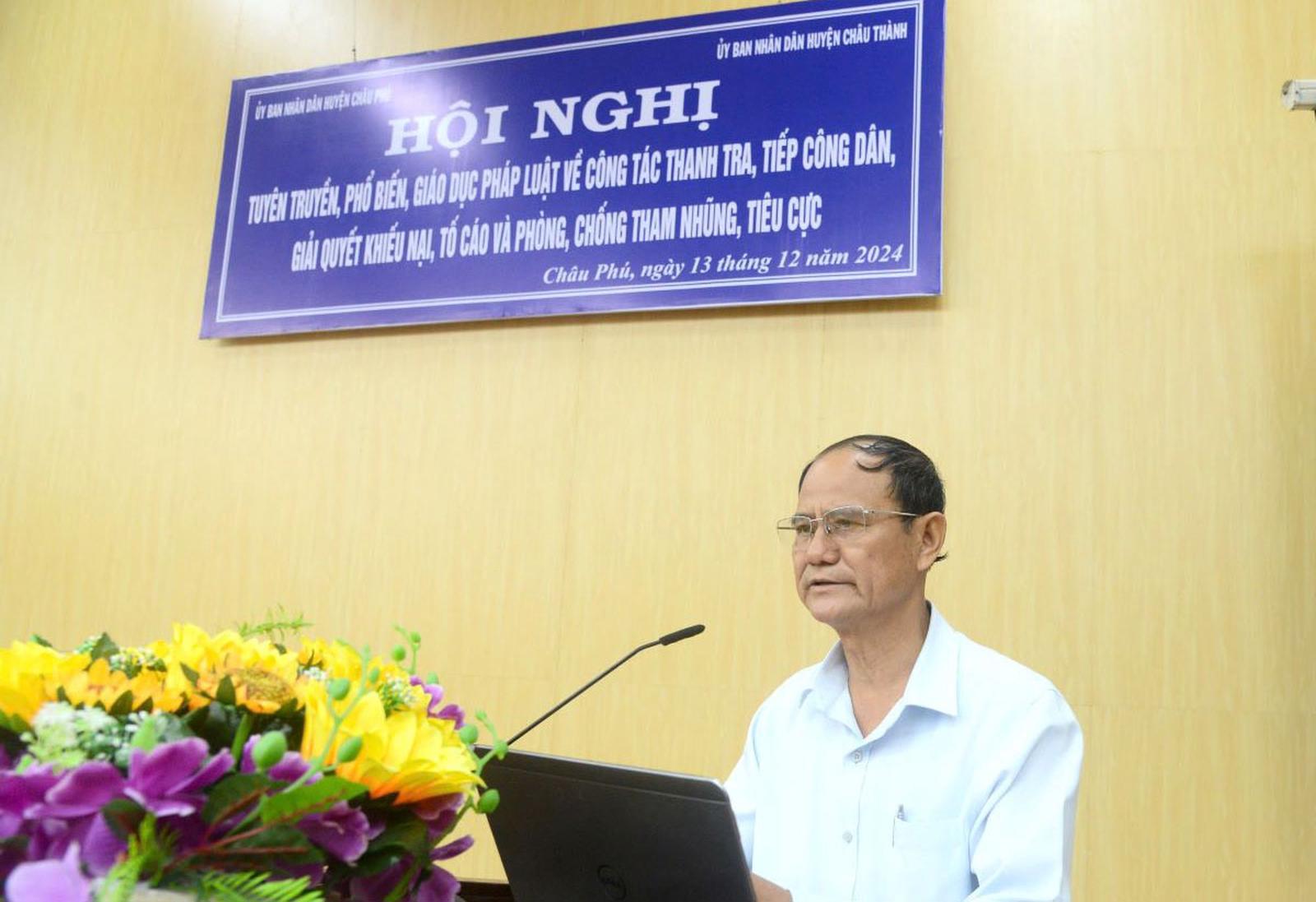 Hội nghị tuyên truyền, phổ biến pháp luật về công tác thanh tra, tiếp công dân, giải quyết khiếu nại, tố cáo và phòng, chống tham nhũng, tiêu cực. Ảnh: chauphu.angiang.gov.vn