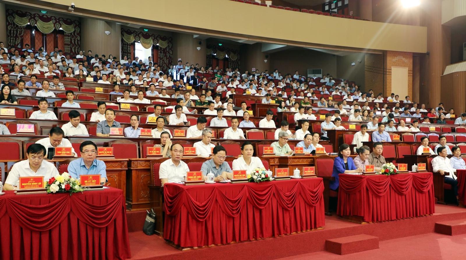 Hội nghị Sơ kết 1 năm thực hiện Kết luận 739-KL/TU và Kết luận 740-KL/TU ngày 16/6/2023 của Ban Thường vụ Tỉnh ủy về xử lý các trường hợp giao đất ở không đúng thẩm quyền; sử dụng đất lấn, chiếm, tự ý chuyển mục đích sử dụng đất... Ảnh: S.T