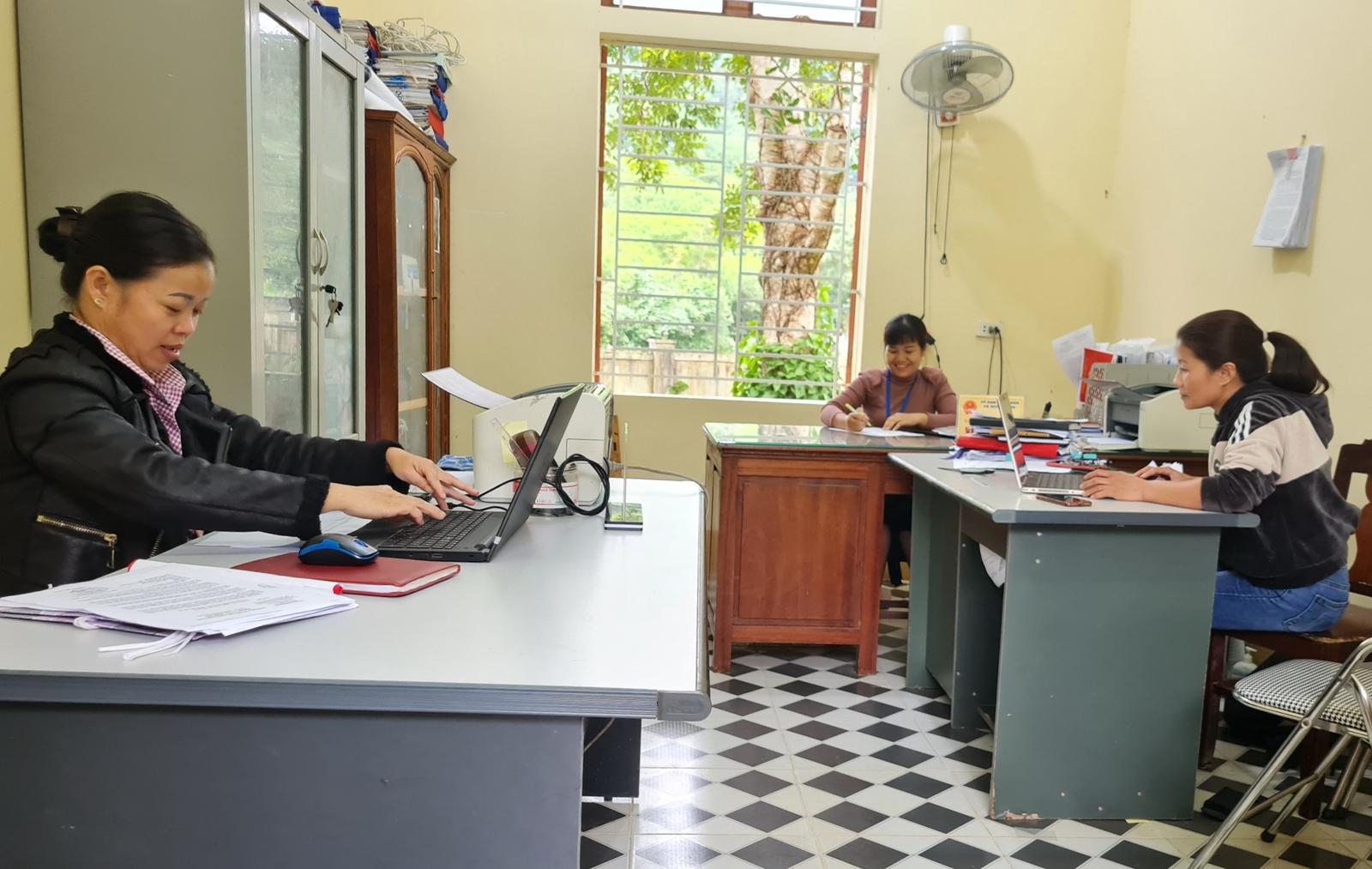 CC địa chính - nông nghiệp - xây dựng và môi trường, UBND xã Mường Nọc, huyện Quế Phong đang thực hiện nhiệm vụ chuyên môn. Ảnh: Xuân Thống