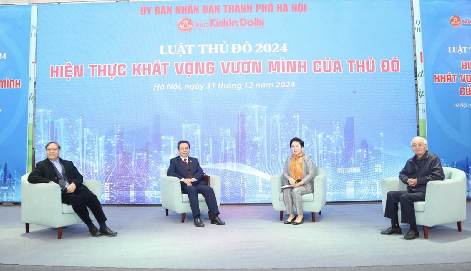 Các diễn giả tham gia trao đổi tại Talkshow “Luật Thủ đô 2024: Hiện thực khát vọng vươn mình của Thủ đô”