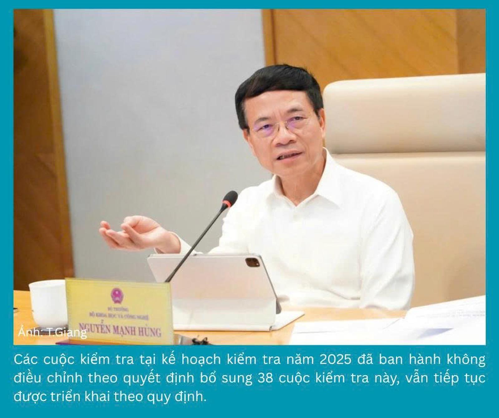 Cụ thể, đối với Ủy ban Tiêu chuẩn Đo lường Chất lượng quốc gia, thay đổi đơn vị chủ trì tiến hành kiểm tra từ Thanh tra Bộ thành Văn phòng Bộ; Công ty CP Hợp nhất quốc tế và Công ty CP dịch vụ Giao hàng nhanh, thay đổi thời gian tiến hành kiểm tra từ quý II/2025 sang quý III/2025; Công ty Cổ phần Bkav (BKAVCA), thay đổi thời gian tiến hành kiểm tra sang quý IV.