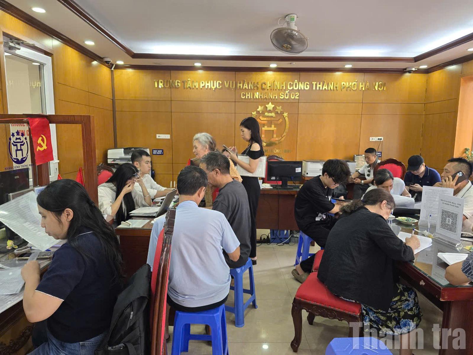 Người dân đến làm thủ tục tại điểm tiếp nhận phục vụ hành chính công phường Thanh Xuân. Ảnh: Thiên Bình