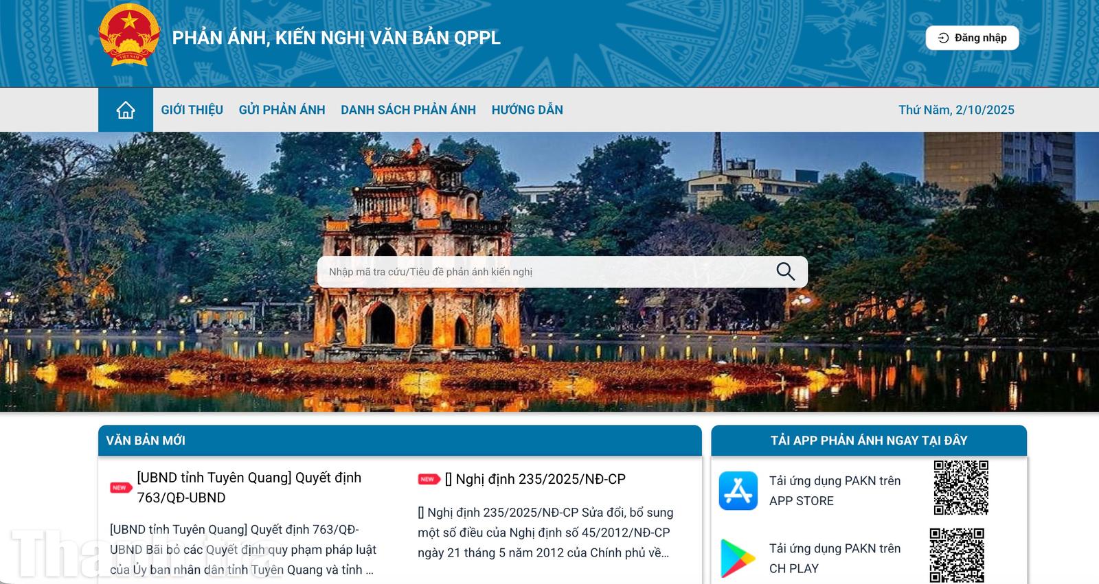 Hệ thống thông tin tiếp nhận, xử lý phản ánh, kiến nghị về văn bản quy phạm pháp luật vẫn có những hạn chế. Ảnh chụp màn hình: Minh Nguyệt