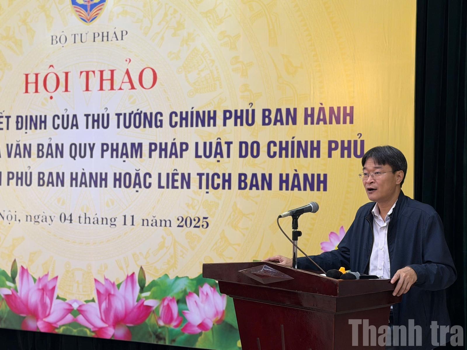 Phát biểu khai mạc, ông Hoàng Xuân Hoan, Phó Cục trưởng Cục Kiểm tra văn bản quy phạm pháp luật và Quản lý xử lý vi phạm hành chính, Bộ Tư pháp nhấn mạnh, các quyết định của Chính phủ, Thủ tướng Chính phủ là những văn bản có tác động sâu rộng tới sự phát triển kinh tế - xã hội của đất nước, ảnh hưởng trực tiếp đến nhiều lĩnh vực của đời sống.