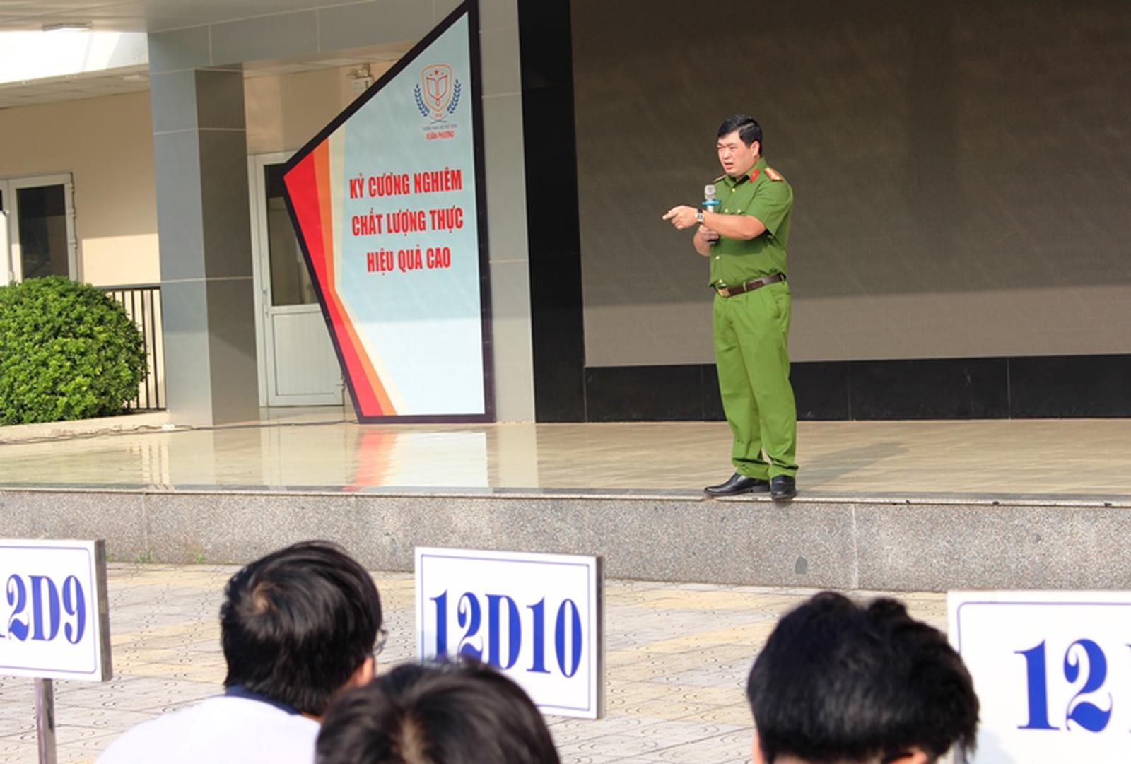 Bằng những dẫn chứng cụ thể, kinh nghiệm giải quyết mâu thuẫn trong thực tế, Thượng tá Nguyễn Minh Hiển đã cung cấp những kiến thức bổ ích cho học sinh.