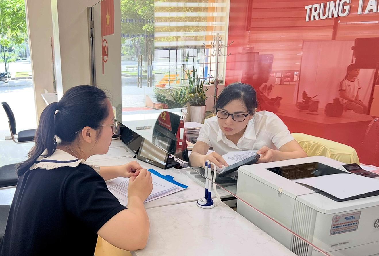 Cán bộ Trung tâm Phục vụ hành chính công tỉnh hướng dẫn người dân làm thủ tục hành chính. Ảnh: BCB.