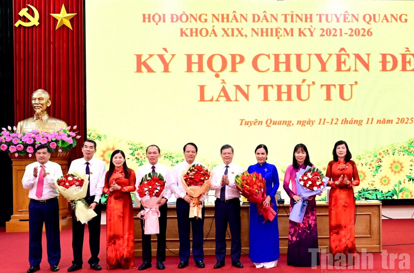 Tại kỳ họp, các Đại biểu HĐND tỉnh Tuyên Quang tiến hành miễn nhiệm Ủy viên UBND tỉnh Tuyên Quang nhiệm kỳ 2021-2026 đối với các đồng chí: Vân Đình Thảo, nguyên Giám đốc Sở Tài chính; Khánh Thị Xuyến, nguyên Chánh Thanh tra tỉnh; Chu Thị Ngọc Diệp, nguyên Giám đốc Sở Dân tộc và Tôn giáo do chuyển công tác.