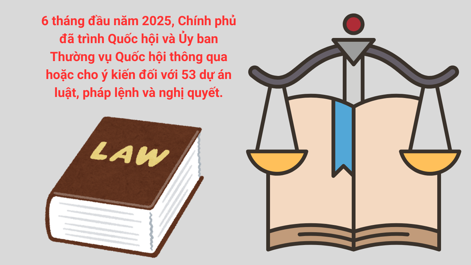 Theo dự thảo Tờ trình Đề xuất của Chính phủ, 6 tháng đầu năm 2025, Chính phủ đã trình Quốc hội và Ủy ban Thường vụ Quốc hội thông qua hoặc cho ý kiến đối với 53 dự án luật, pháp lệnh và nghị quyết. Trong 6 tháng cuối năm, dự kiến sẽ trình thêm 49 văn bản.