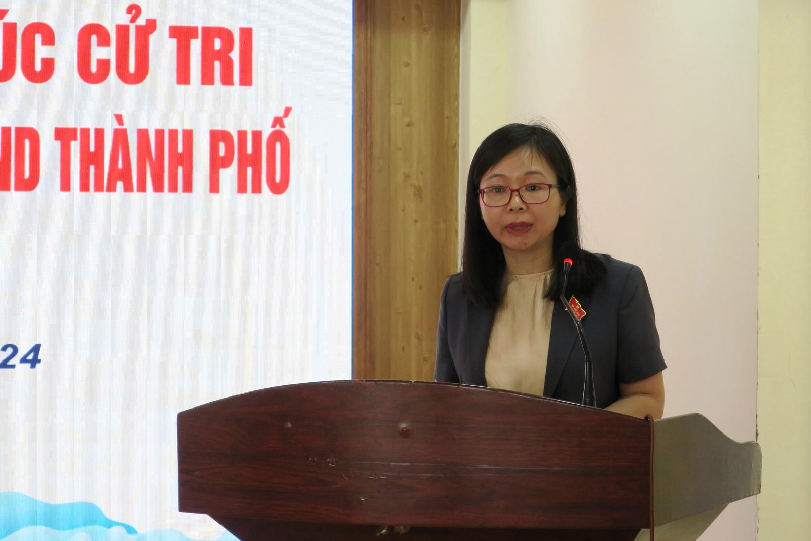 Tại cuộc tiếp xúc, đại biểu Nguyễn Thị Tịnh, Phó Trưởng ban Pháp chế HĐND TP báo cáo cử tri quận về 6 nội dung bao gồm: Thời gian, nội dung tiến hành kỳ họp thường lệ cuối năm 2024; dự thảo báo cáo của UBND TP về kết quả thực hiện nhiệm vụ kinh tế - xã hội, quốc phòng - an ninh năm 2024; nhiệm vụ, giải pháp phát triển kinh tế - xã hội, quốc phòng - an ninh TP năm 2025.