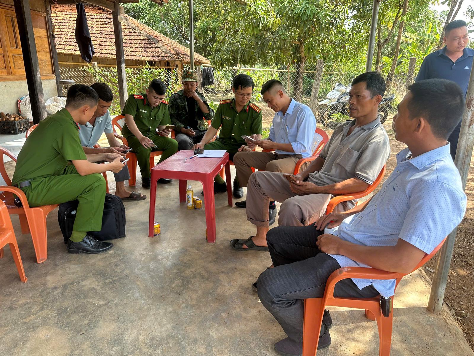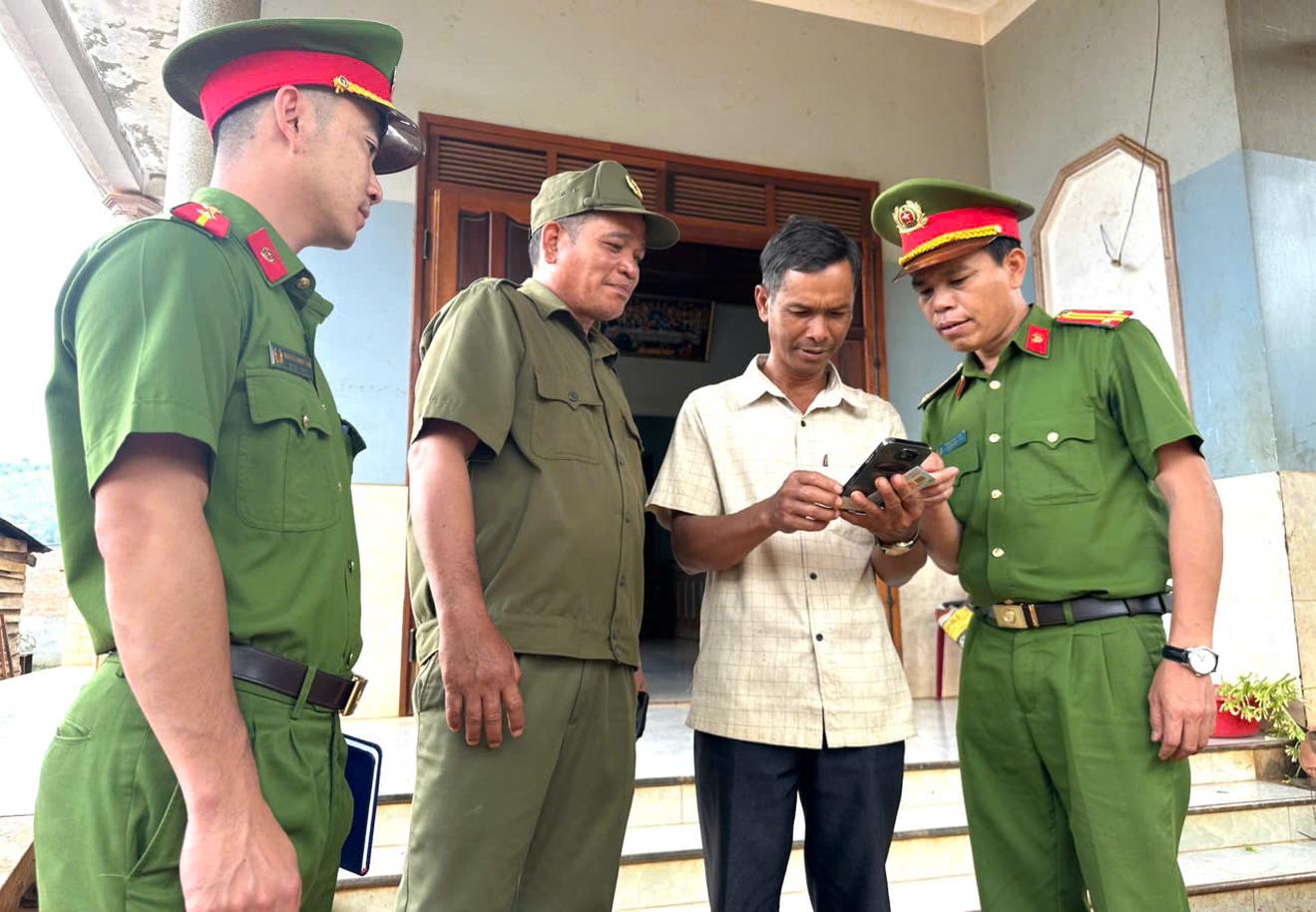 Công an xã đến tận nhà dân hướng dẫn. Ảnh: HL