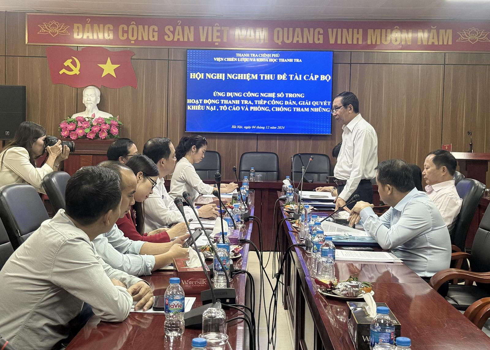 Đánh giá kết quả nghiên cứu, Hội đồng nghiệm thu nhấn mạnh tính cấp thiết của đề tài. Đề tài đã luận giải được những vấn đề lý luận và thực tiễn về công nghệ số và ứng dụng công nghệ số vào hoạt động thanh tra, tiếp công dân, giải quyết KNTC và PCTN.