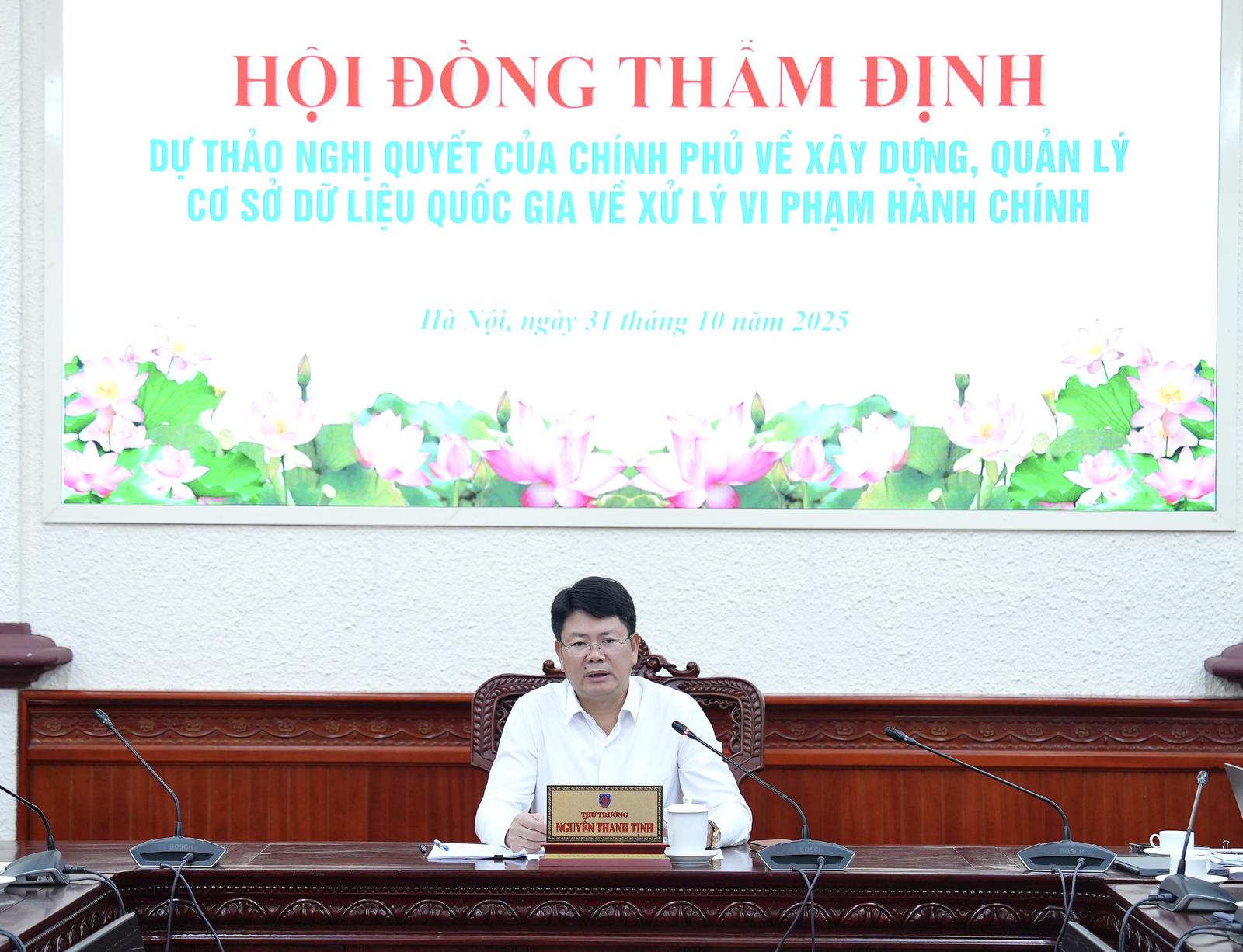 Chiều 31/10, Thứ trưởng Bộ Tư pháp Nguyễn Thanh Tịnh chủ trì Hội đồng thẩm định dự thảo Nghị quyết của Chính phủ về xây dựng, quản lý CSDLQG về XLVPHC.