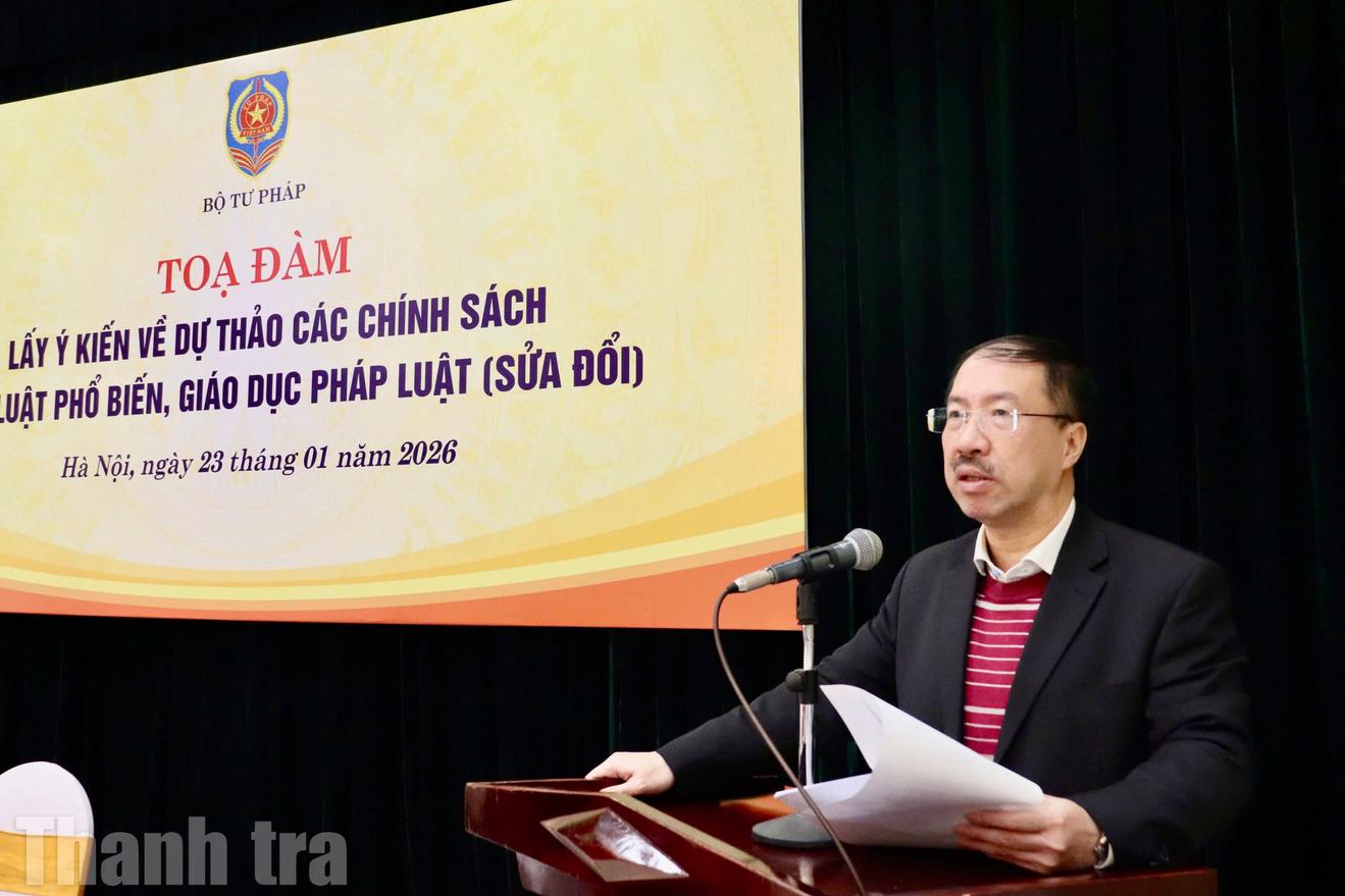 Ngày 23/1, Bộ Tư pháp tổ chức tọa đàm lấy ý kiến về dự thảo các chính sách của Luật Phổ biến, giáo dục pháp luật (sửa đổi) với hình thức trực tiếp kết hợp trực tuyến. Đồng chủ trì tọa đàm có Cục trưởng Cục PBGDPL và Trợ giúp pháp lý Cù Thu Anh; Phó Cục trưởng Cục PBGDPL và Trợ giúp pháp lý Phan Hồng Nguyên.