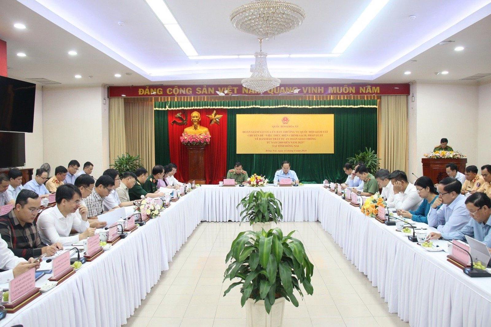 (Thanh tra) - Sáng 11/4, Đoàn Giám sát của Ủy ban Thường vụ Quốc hội đã có buổi làm việc với UBND tỉnh Đồng Nai theo chuyên đề “Việc thực hiện chính sách, pháp luật về bảo đảm trật tự, an toàn giao thông từ năm 2009 đến hết năm 2023”.