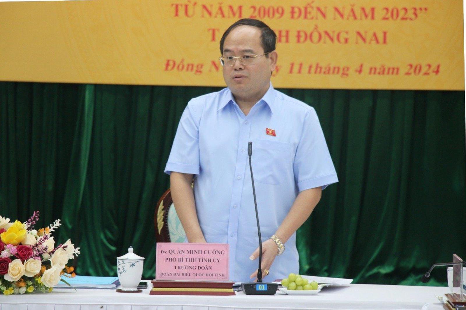Phó Bí thư Tỉnh ủy, Trưởng đoàn Đại biểu Quốc hội tỉnh Đồng Nai Quản Minh Cường phát biểu. Ảnh: C.C