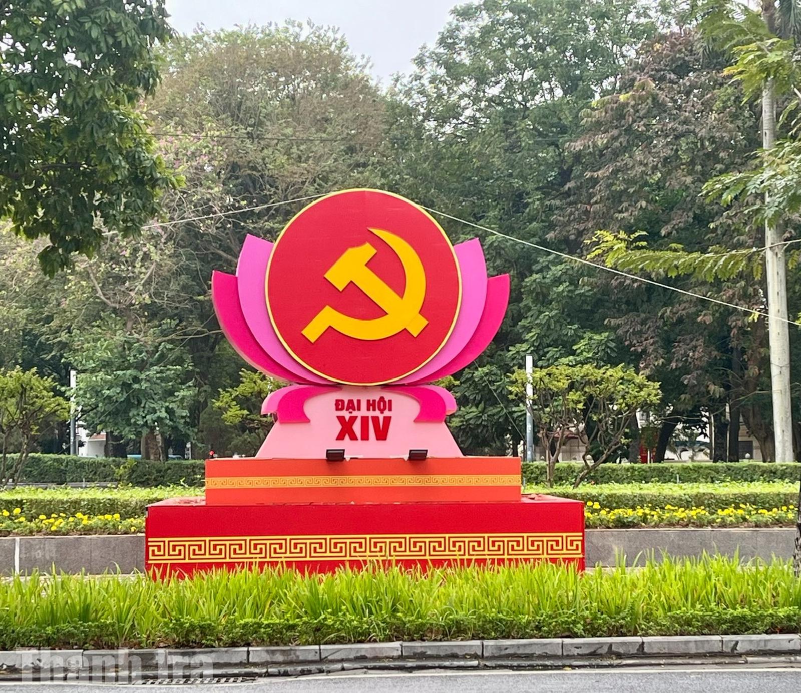 Đường phố Thủ đô Hà Nội rợp khẩu hiệu, cờ hoa chào mừng Đại hội đại biểu toàn quốc lần thứ XIV của Đảng. Ảnh: Minh Nguyệt