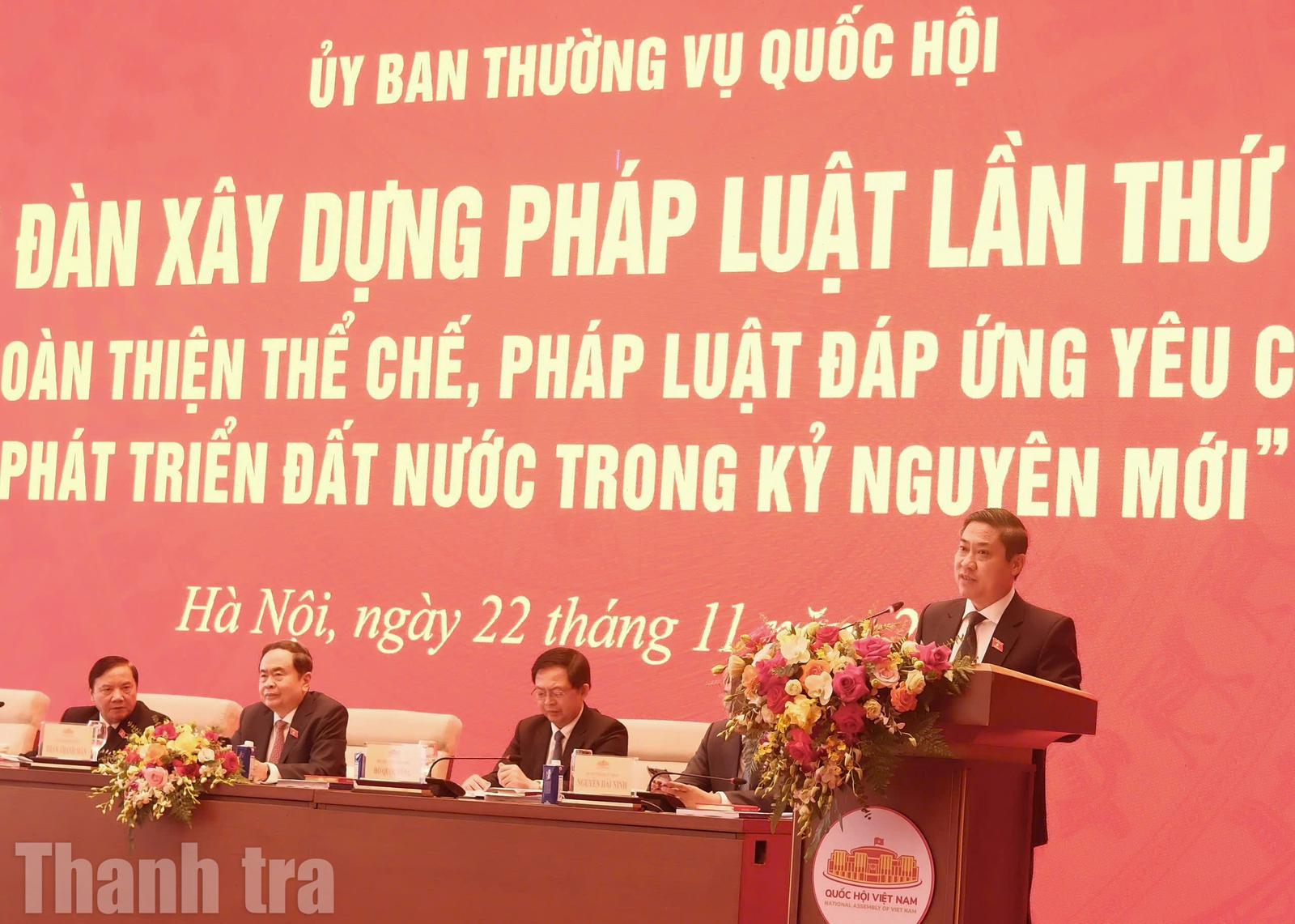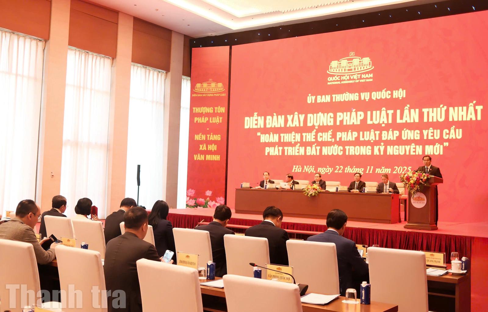 Diễn đàn xây dựng pháp luật lần thứ nhất với chủ đề "Hoàn thiện thể chế, pháp luật đáp ứng yêu cầu phát triển đất nước trong kỷ nguyên mới". Ảnh: Bảo Anh - Dương Nguyễn