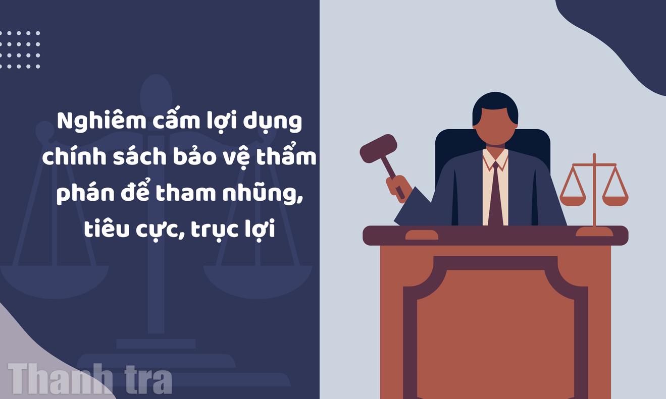 Đáng chú ý, một trong những hành vi bị nghiêm cấm trong bảo vệ thẩm phán là “Lợi dụng quyền khiếu nại, tố cáo, kiến nghị, phản ánh sai sự thật hoặc nhận xét, đánh giá tùy tiện nhằm vu cáo, xúc phạm danh dự, nhân phẩm, uy tín hoặc gây ảnh hưởng tiêu cực đến vị trí công tác của thẩm phán” và “Lợi dụng chính sách bảo vệ thẩm phán để thực hiện hoặc bao che hành vi tham nhũng, tiêu cực, trục lợi, vi phạm quy định của pháp luật”.