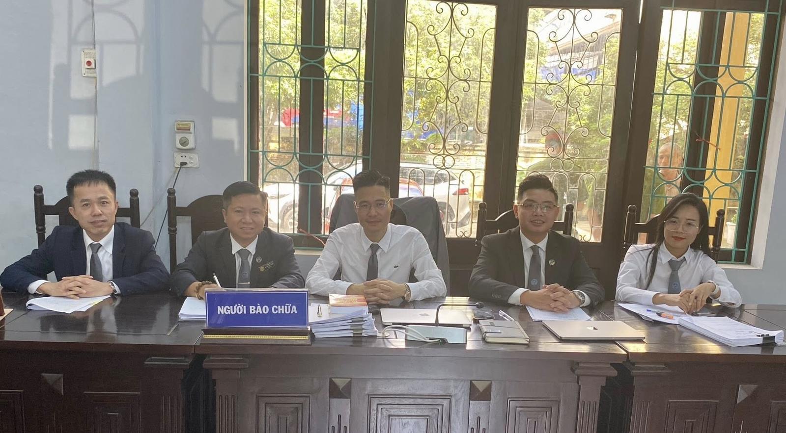 Luật sư Nguyễn Doãn Hùng (thứ hai từ trái sang) tham gia bào chữa tại phiên tòa xét xử sơ thẩm vụ án "Gà lôi" ngày 17/10/2025 tại Hưng Yên. Ảnh: NVCC