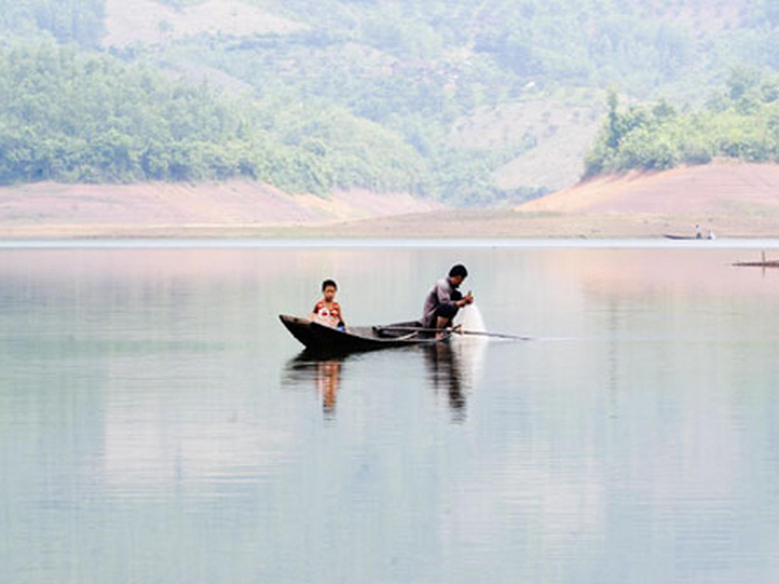 Đánh cá trên hồ Cấm Sơn để tạo thêm thu nhập. Ảnh: Thu Minh