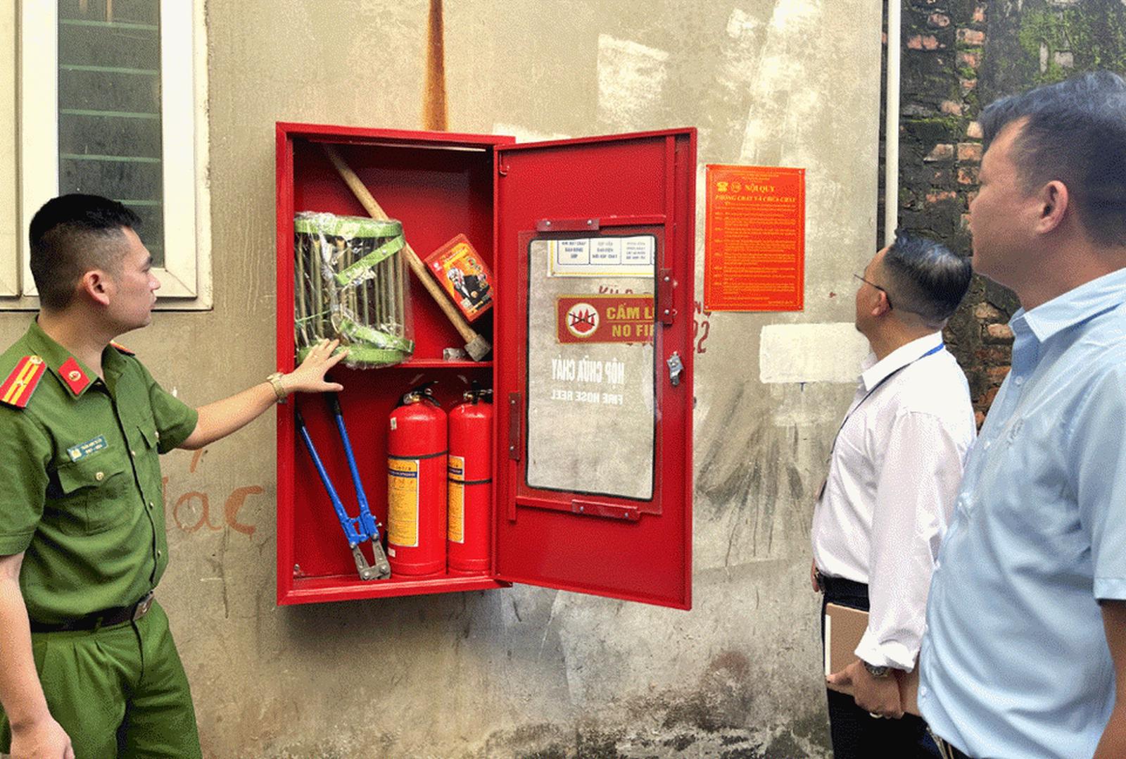 Lực lượng chức năng phường Phú Lương kiểm tra thiết bị PCCC tại tổ dân phố được xây dựng theo mô hình An toàn PCCC công cộng