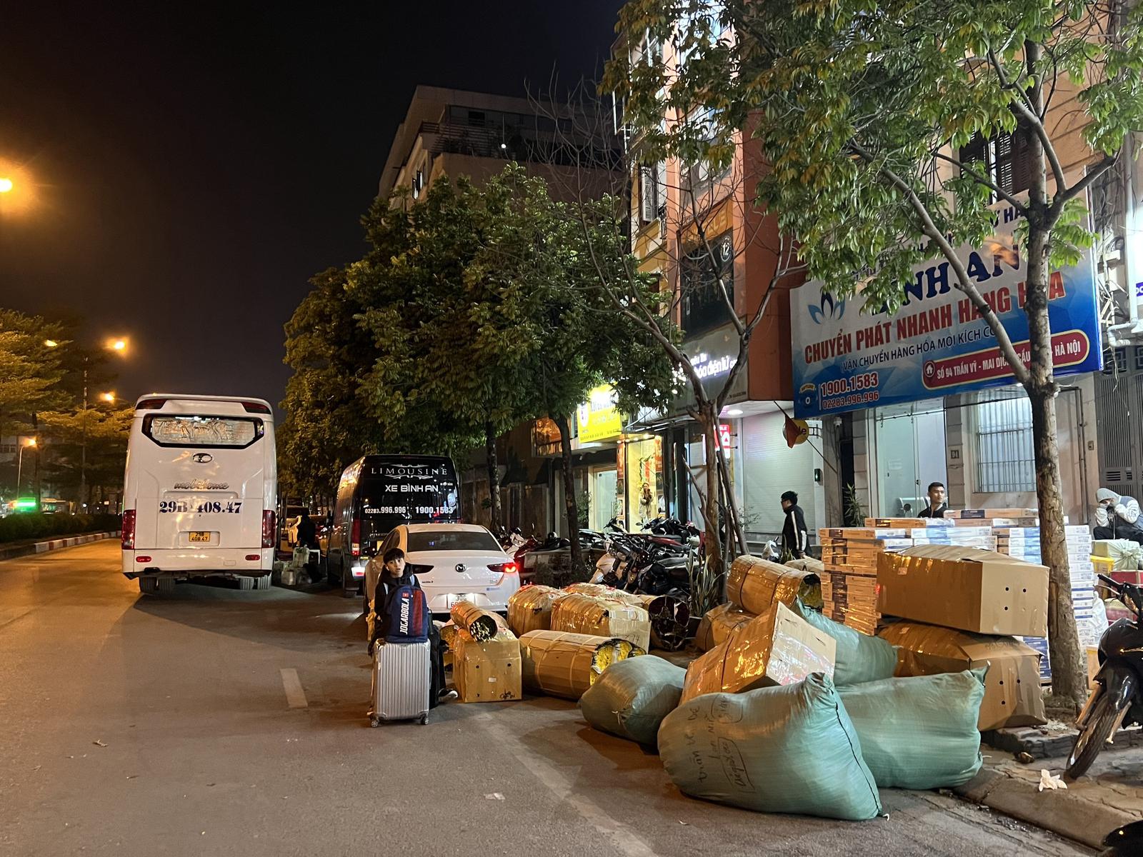Xe dù từ các tỉnh miền trung đổ về đường Trần Vỹ để đón khách, giao nhận hàng hoá. Ảnh: CS