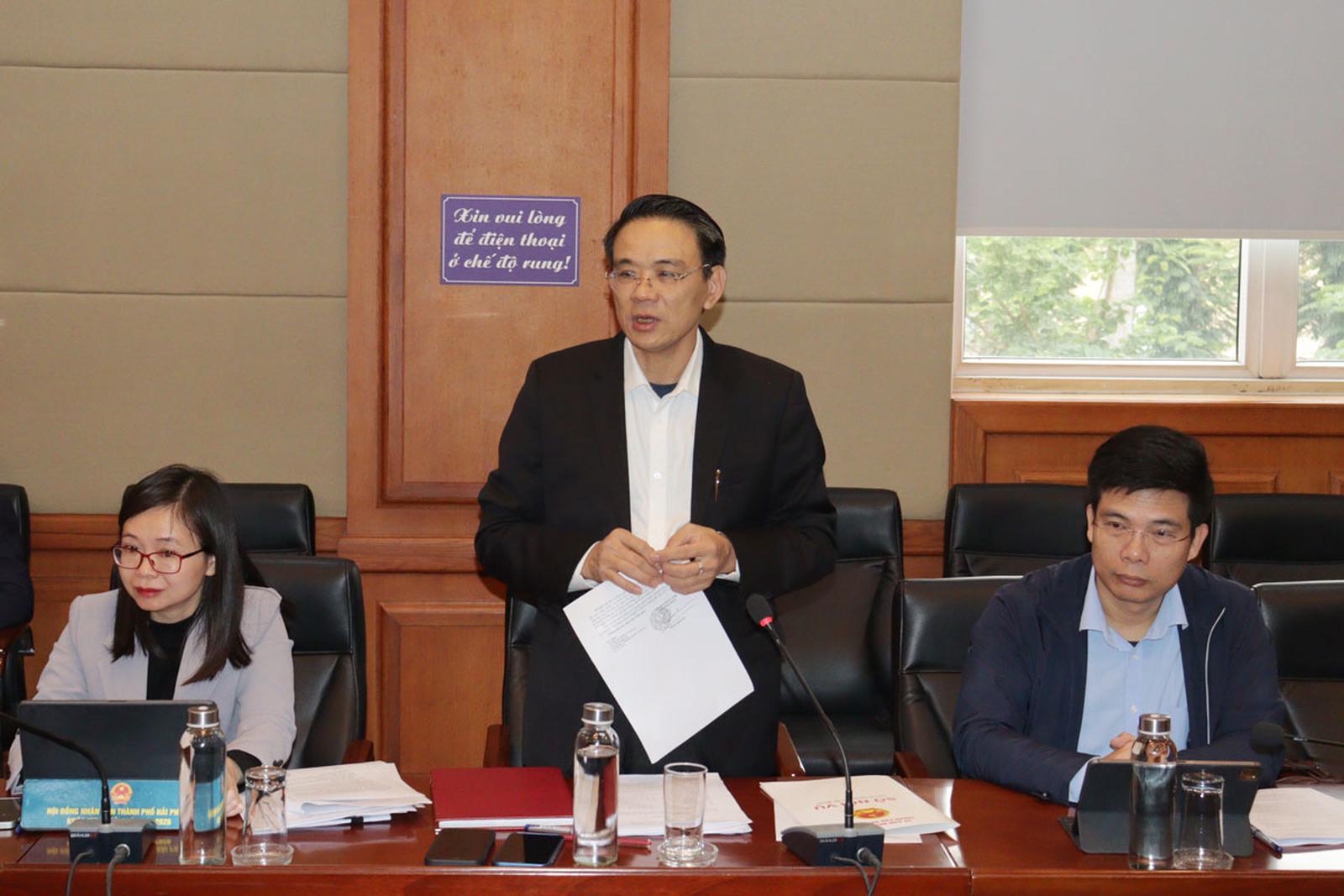 Trưởng Ban Pháp chế HĐND thành phố Phạm Quốc Ka phát biểu tại cuộc làm việc. Ảnh: KT