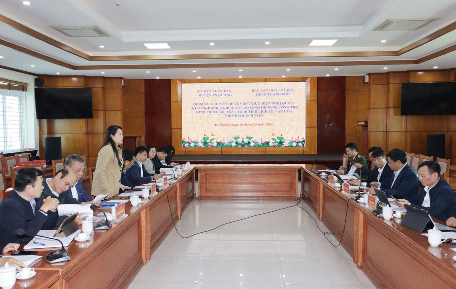 (Thanh tra) - Ngày 20/12, Đoàn giám sát chuyên đề Ban Văn hóa - Xã hội HĐND thành phố làm việc với UBND huyện An Dương giám sát việc thực hiện các nghị quyết về việc công trợ kinh phí trùng tu, tôn tạo di tích lịch sử, di tích quốc gia.