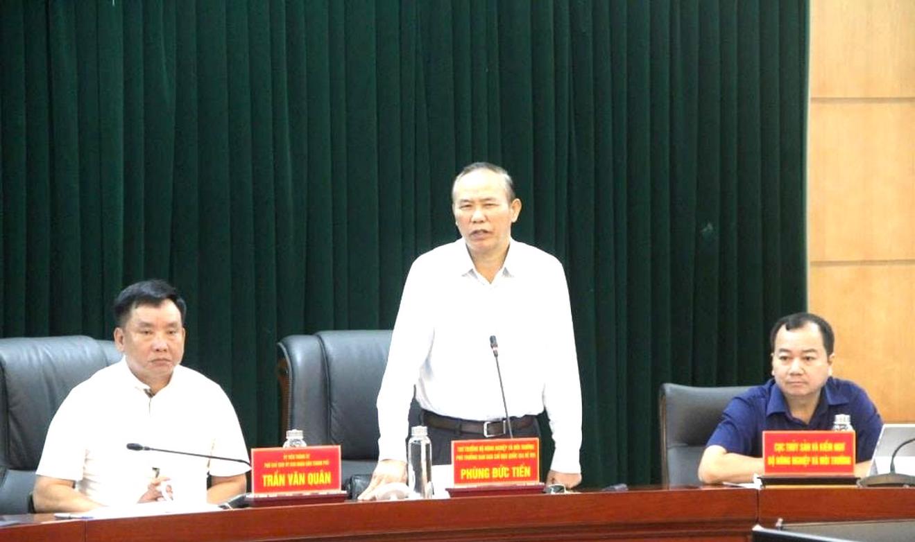 Thứ trưởng Bộ Nông nghiệp và Môi trường Phùng Đức Tiến phát biểu tại cuộc làm việc. Ảnh: Baohaiphong.vn