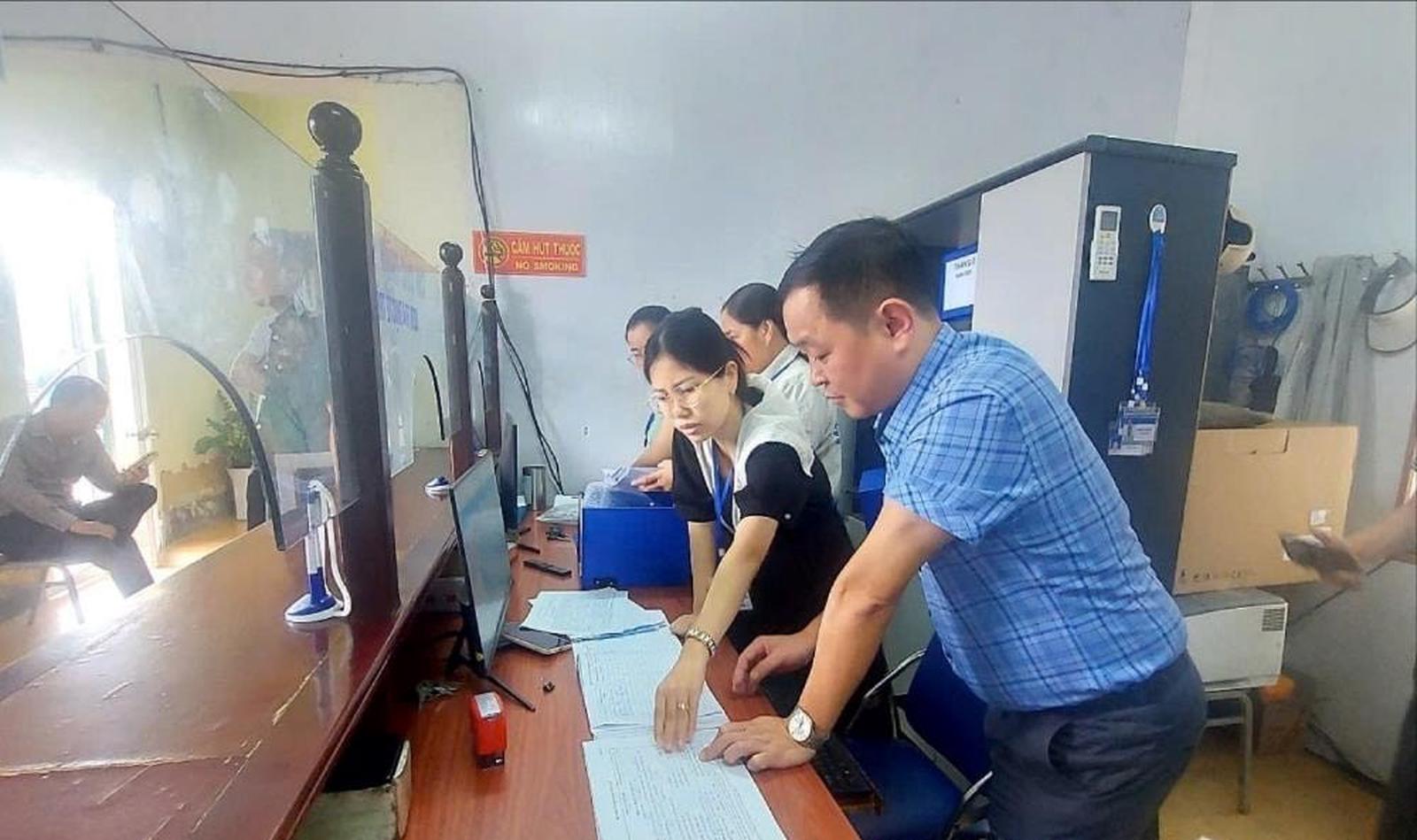 Đoàn công tác kiểm tra nhật ký khai thác thủy sản tại Cảng cá Ngọc Hải. Ảnh: Baohaiphong.vn