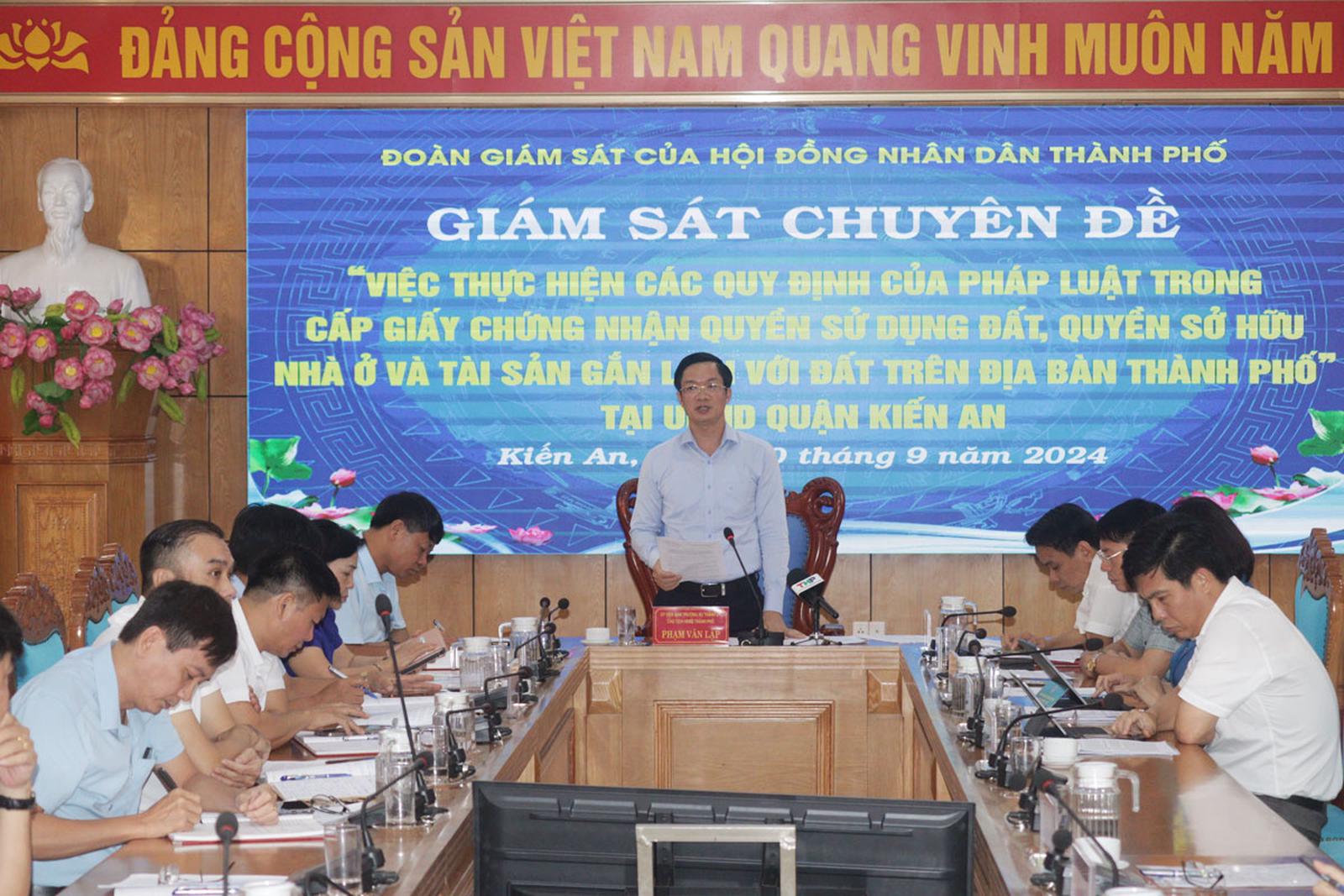 Trước đó, ngày 20/9, đoàn giám sát chuyên đề của HĐND thành phố về thực hiện các quy định của pháp luật trong cấp GCNQSDĐ, quyền sở hữu nhà ở và tài sản gắn liền với đất trên địa bàn làm việc với UBND quận Kiến An.