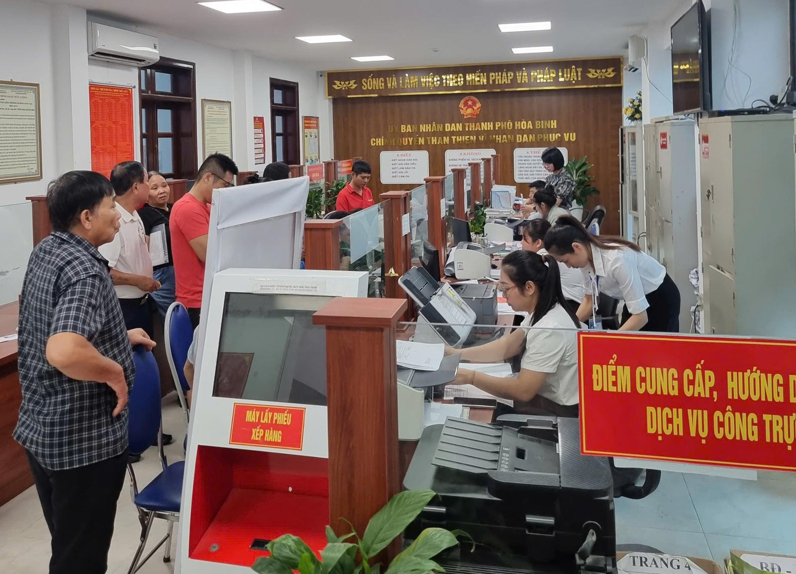 Người dân thực hiện thủ tục hành chính tại UBND thành phố Hoà Bình. Ảnh minh hoạ: TK