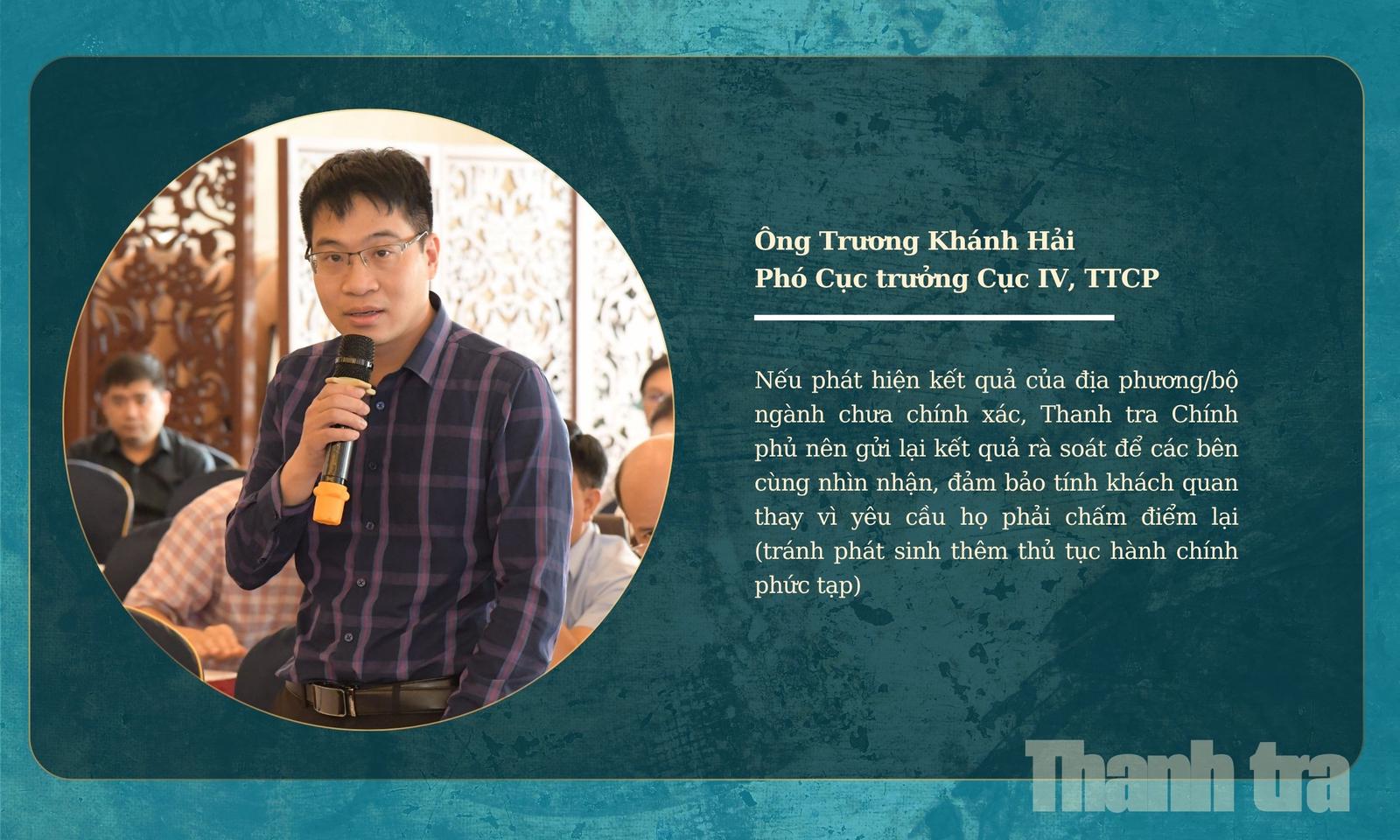 Về đánh giá công tác phòng, chống tham nhũng, ông Trương Khánh Hải, Phó Cục trưởng Cục IV (Thanh tra Chính phủ) cho rằng, nên giữ nguyên cách diễn đạt theo luật đối với “Bộ chỉ số đánh giá công tác phòng, chống tham nhũng của các bộ, cơ quan ngang bộ và UBND cấp tỉnh”, thay vì rút gọn thành “cấp bộ, cấp tỉnh” như dự thảo, nhằm bảo đảm tính chuẩn xác và thống nhất về thuật ngữ.