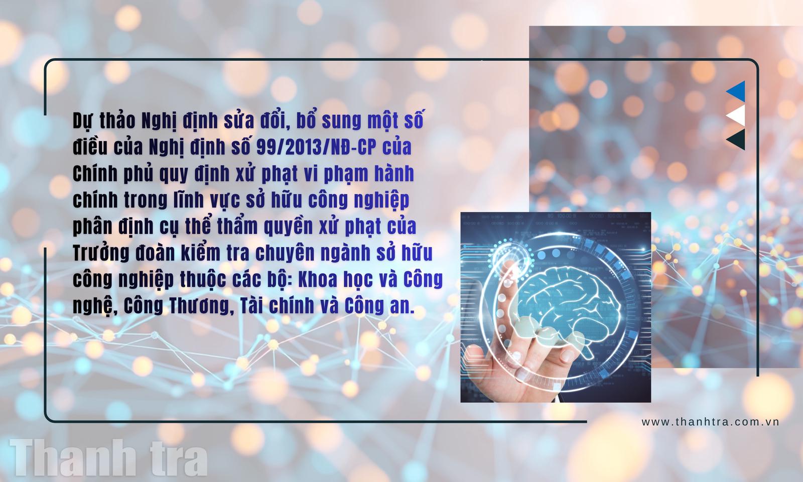 Điểm nổi bật là dự thảo đã bổ sung quy định cụ thể về thẩm quyền xử phạt cho Trưởng đoàn kiểm tra chuyên ngành sở hữu công nghiệp do Bộ trưởng các Bộ Khoa học và Công nghệ, Công Thương, Tài chính và Công an thành lập.