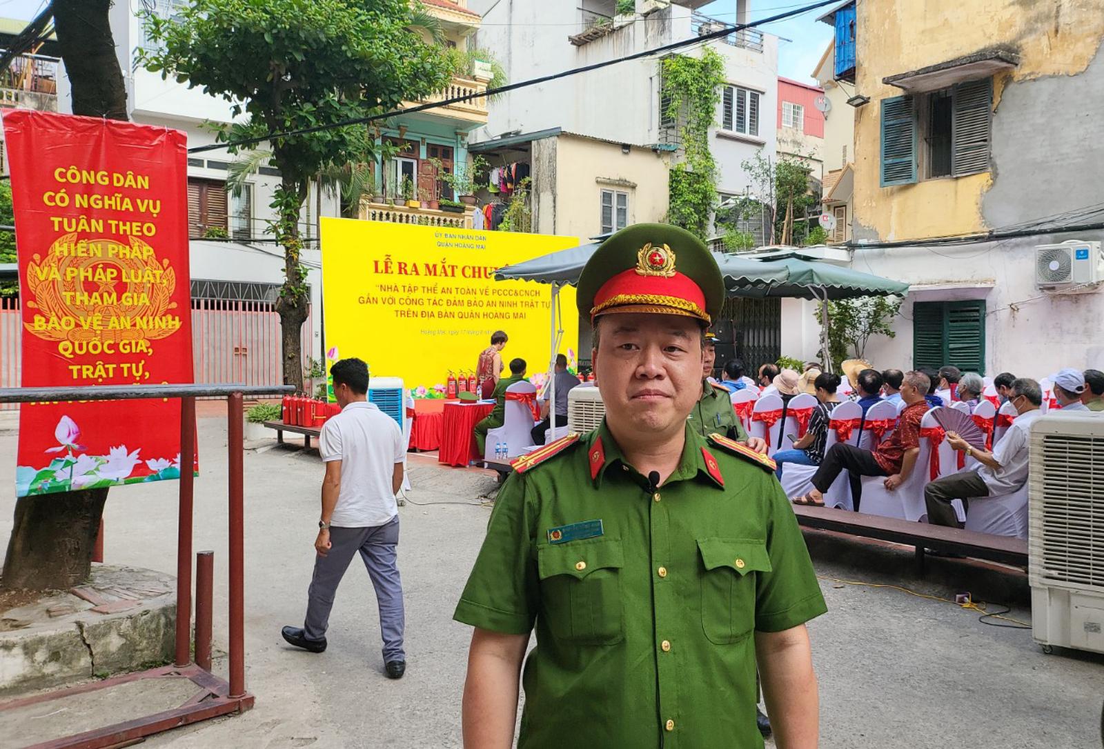 Trung tá Nguyễn Hùng Nam - Phó trưởng Công an quận Hoàng Mai cho biết, hiện nay nguy cơ tiềm ẩn xảy ra cháy nổ tại các khu tập thể, chung cư cũ là rất cao, trên địa bàn TP Hà Nội đã xảy ra nhiều vụ cháy tại các khu tập thể gây thiệt hại nghiêm trọng về người và tài sản, vì vậy Công an quận Hoàng Mai đã kịp thời tham mưu cho UBND quận ban hành kế hoạch xây dựng chuyên đề “Nhà tập thể an toàn phòng cháy, chữa cháy và cứu nạn cứu hộ gắn với công tác đảm bảo an ninh trật tự”, đồng thời tăng cường công tác tuyên truyền, hướng dẫn, kiểm tra đảm bảo an toàn PCCC đối với các nhà tập thể cũ trên địa bàn quận.