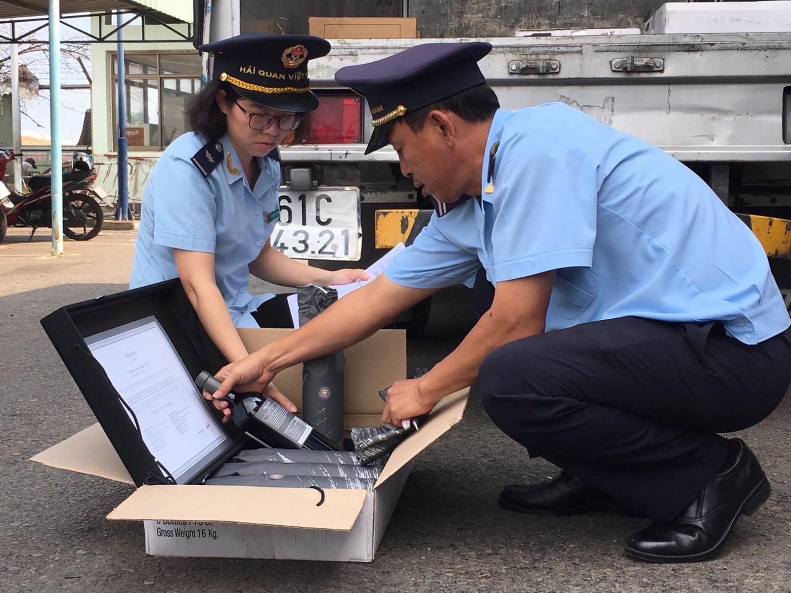 Cán bộ hải quan kiểm tra hàng hóa xuất nhập khẩu. Nguồn: internet