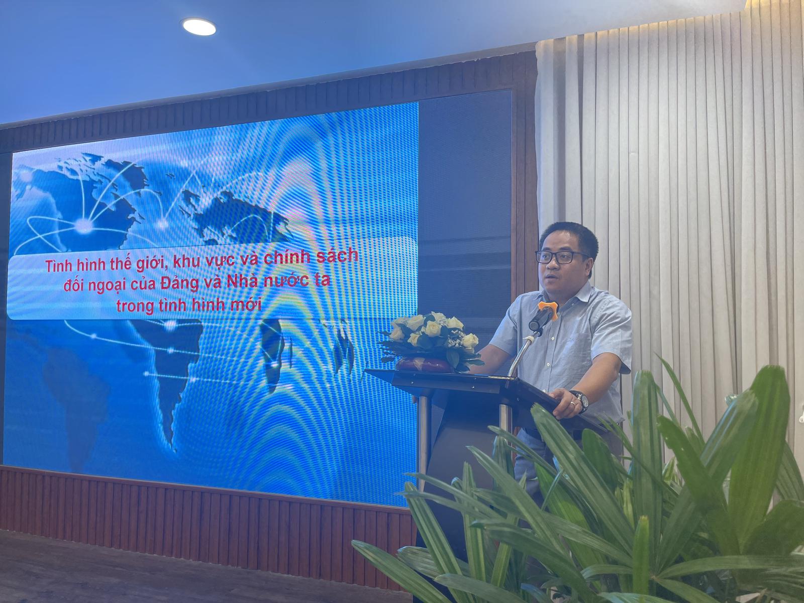 Ông Nguyễn Hải Lưu - Phó Vụ trưởng Vụ Chính sách đối ngoại, Bộ Ngoại giao trình bày về “Tình hình thế giới, khu vực, quan hệ đối ngoại với các nước láng giềng và chủ trương, chính sách của Đảng và Nhà nước ta”. Bài trình bày gồm có 3 nội dung chính: Một số nét lớn về tình hình thế giới, khu vực; đường lối đối ngoại Đại hội XIII của Đảng; một số thành tựu đối ngoại nổi bật và phương hướng trong thời gian tới.