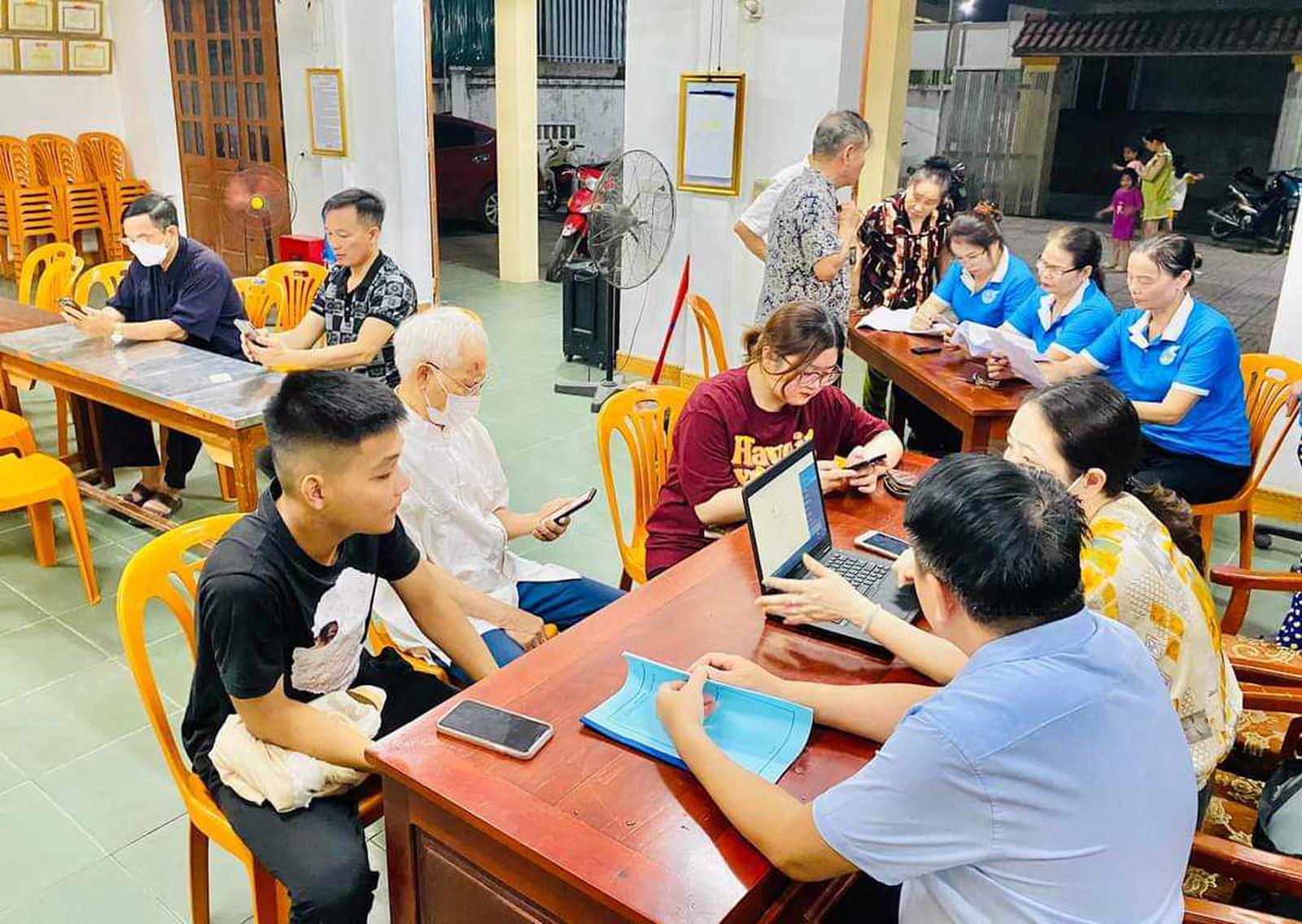 Một số thành viên của tổ công nghệ số cộng đồng phường Hồng Sơn (TP Vinh, Nghệ An) đang hướng dẫn về kỹ năng số cơ bản cho người dân. Ảnh: Hải Yến