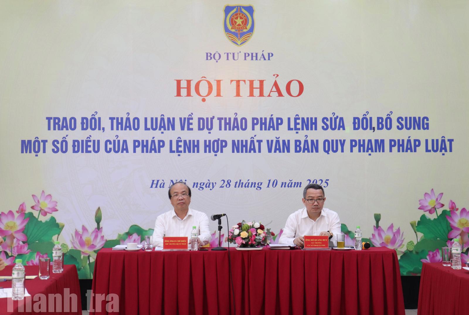 Chiều 28/10, Thứ trưởng Bộ Tư pháp Phan Chí Hiếu đã chủ trì hội thảo “Trao đổi, thảo luận về dự thảo Pháp lệnh sửa đổi, bổ sung một số điều của Pháp lệnh hợp nhất văn bản quy phạm pháp luật”.