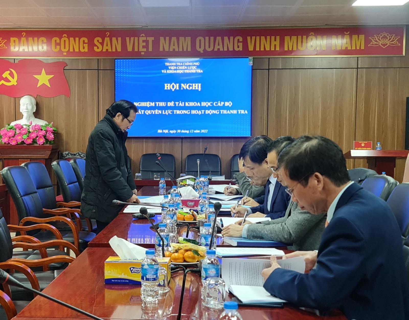 Đánh giá kết quả nghiên cứu đề tài, Hội đồng Nghiệm thu khẳng định: Đây là đề tài có tính thời sự, cần thiết trong điều kiện hiện nay. Nội dung nghiên cứu đầy đủ, thông tin, dữ liệu phong phú, sử dụng nguồn tài liệu đáng tin cậy. Đề tài đã đưa ra những định hướng quan điểm, giải pháp nhằm hoàn thiện pháp luật cũng như đổi mới nâng cao hiệu quả quản lý quyền lực trong hoạt động thanh tra.