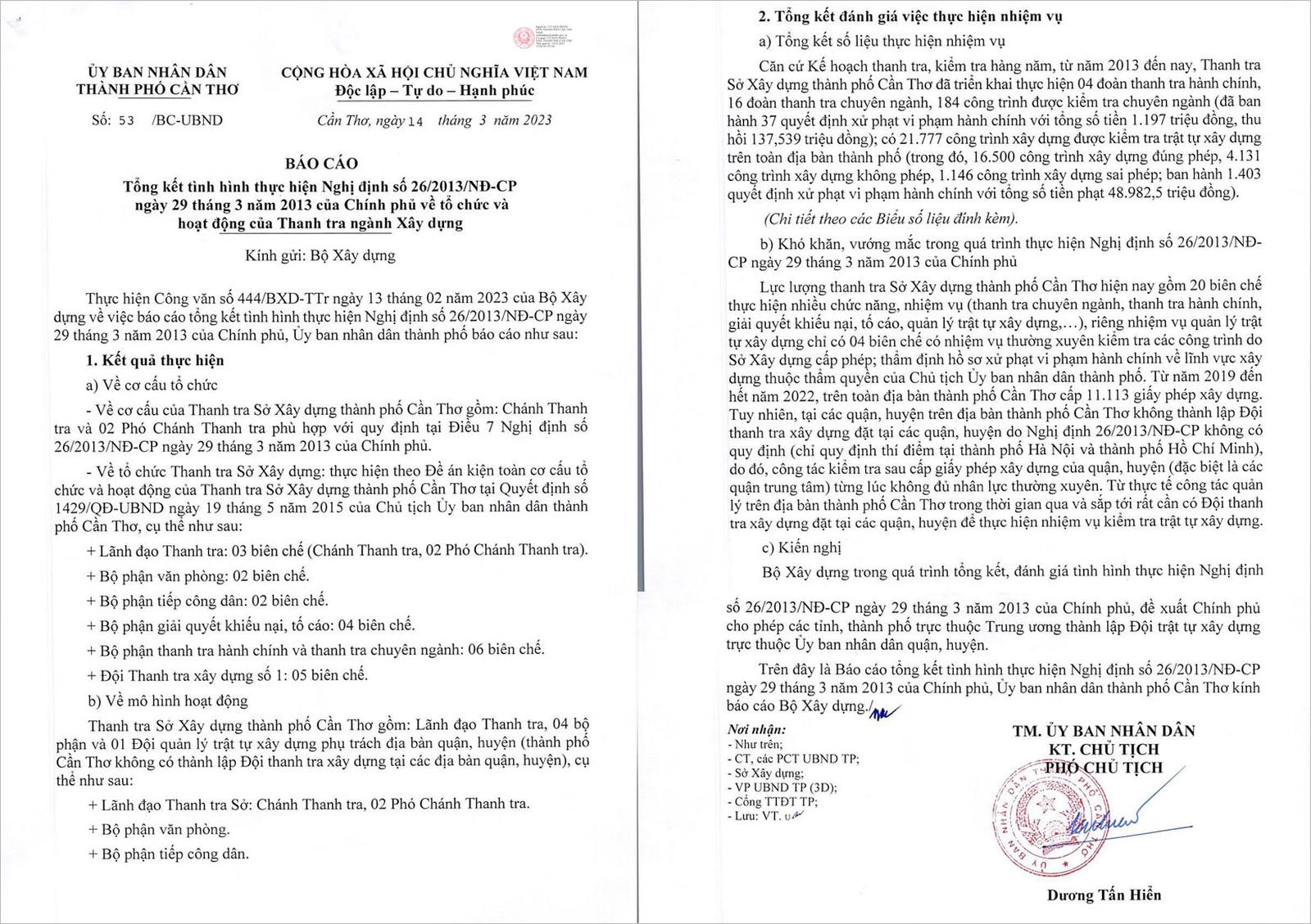 Đó là nội dung đáng chú ý của báo cáo tổng kết tình hình thực hiện Nghị định 26/2013/NĐ-CP ngày 29/3/2013 của Chính phủ về tổ chức và hoạt động của thanh tra ngành Xây dựng, vừa được UBND TP Cần Thơ ban hành.