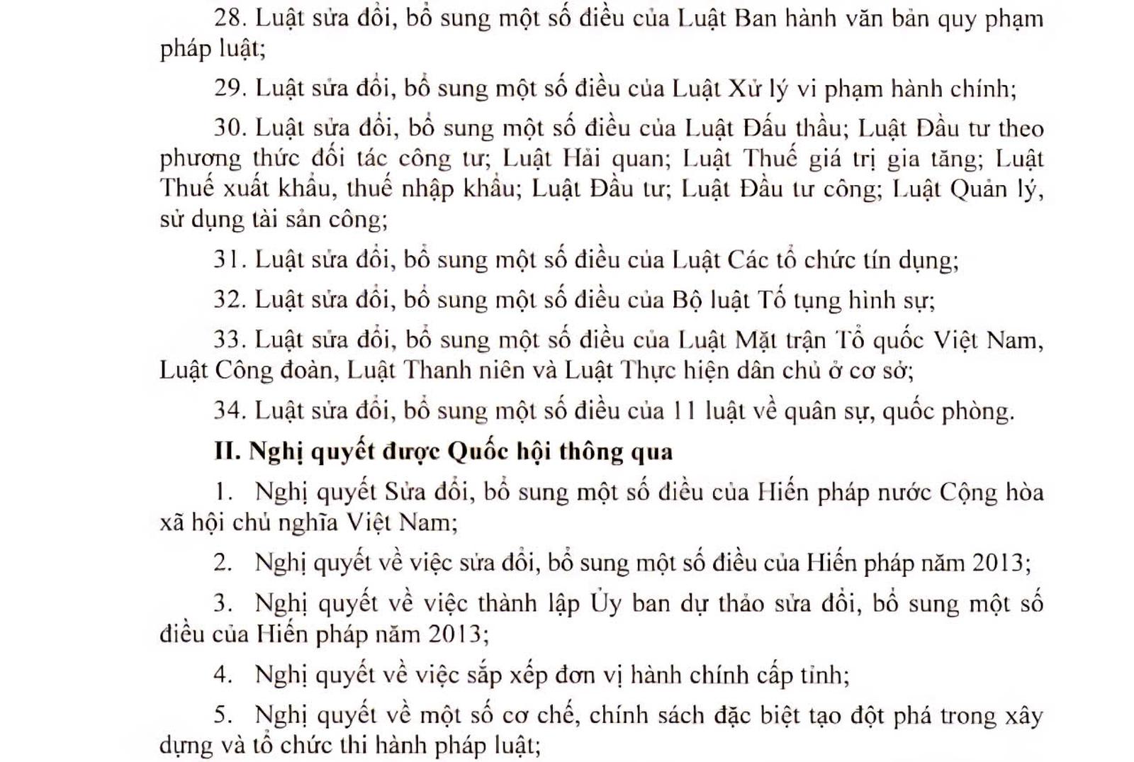 Cụ thể, Quốc hội đã thông qua 34 luật và 34 nghị quyết; cho ý kiến lần đầu đối với 6 dự án luật.