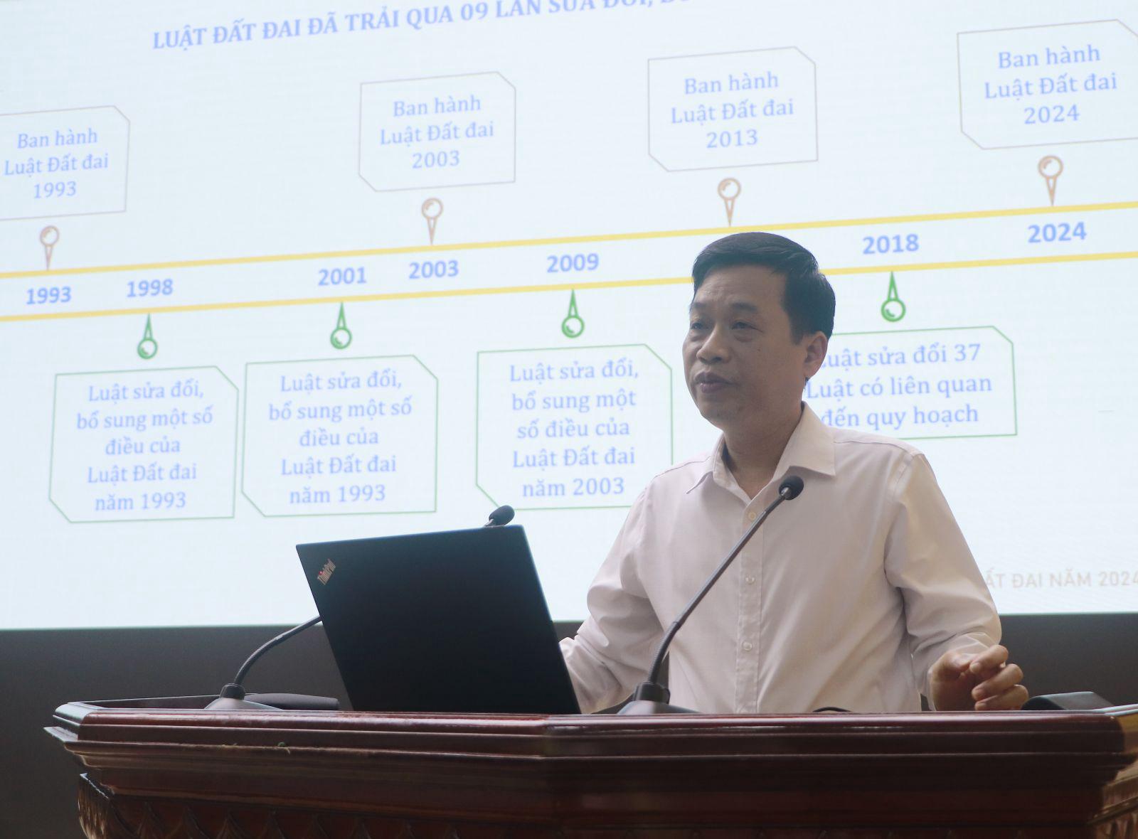 Ông Lê Văn Bình, Phó Vụ trưởng Vụ Đất đai trình bày quy định mới trong Luật Đất đai 2024. Ảnh: Thu Hoài