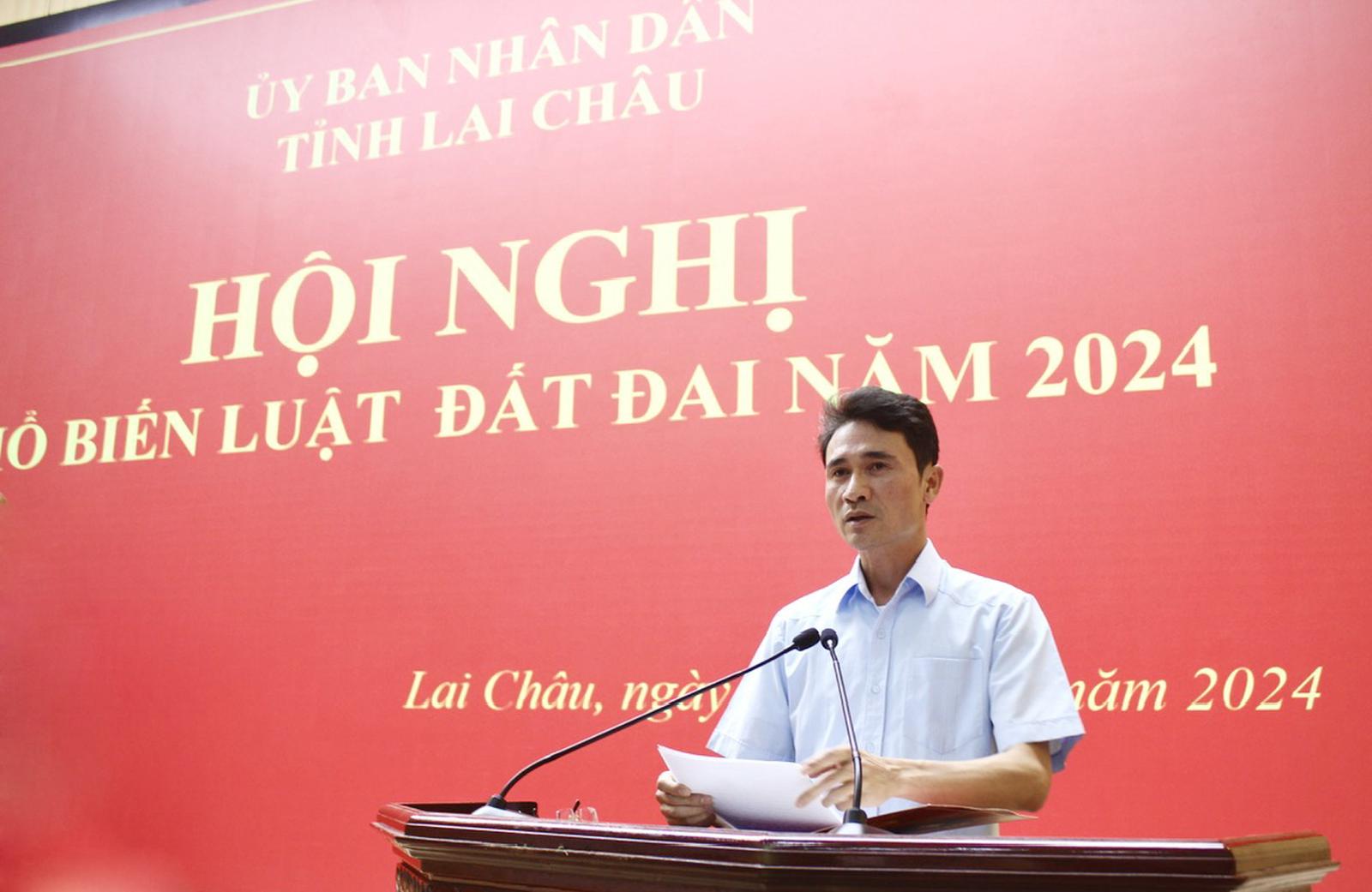 Hội nghị có sự tham gia của ông Hà Trọng Hải, Phó Chủ tịch UBND tỉnh Lai Châu; ông Lê Văn Bình, Phó Vụ trưởng Vụ Đất đai, Bộ Tài nguyên và Môi trường cùng đại diện các sở, ban, ngành liên quan; các lực lượng vũ trang; cùng với các thành viên Hội đồng phối hợp phổ biến, giáo dục pháp luật tỉnh và báo cáo viên pháp luật các cấp.